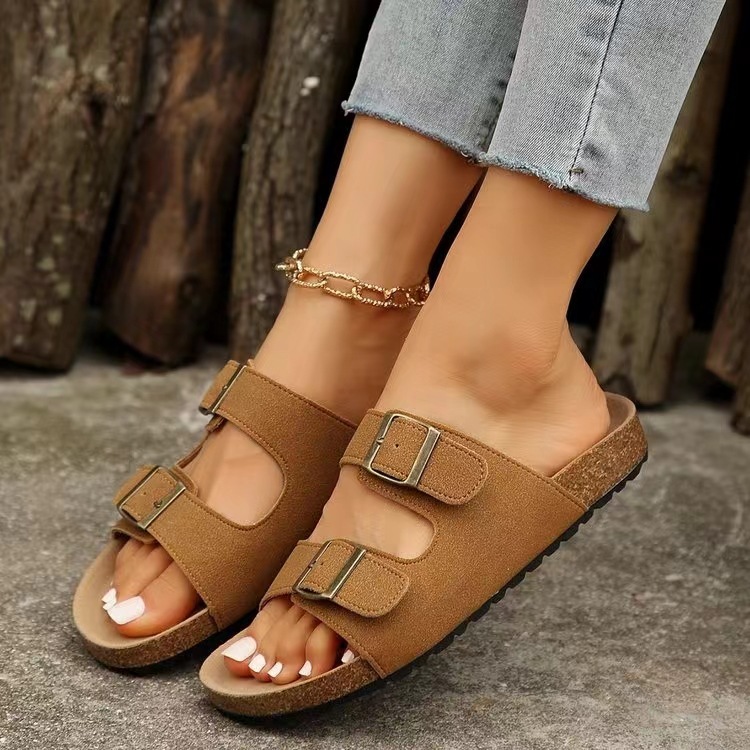 Leather Thick-Soled Double Buckle Flat Sandals